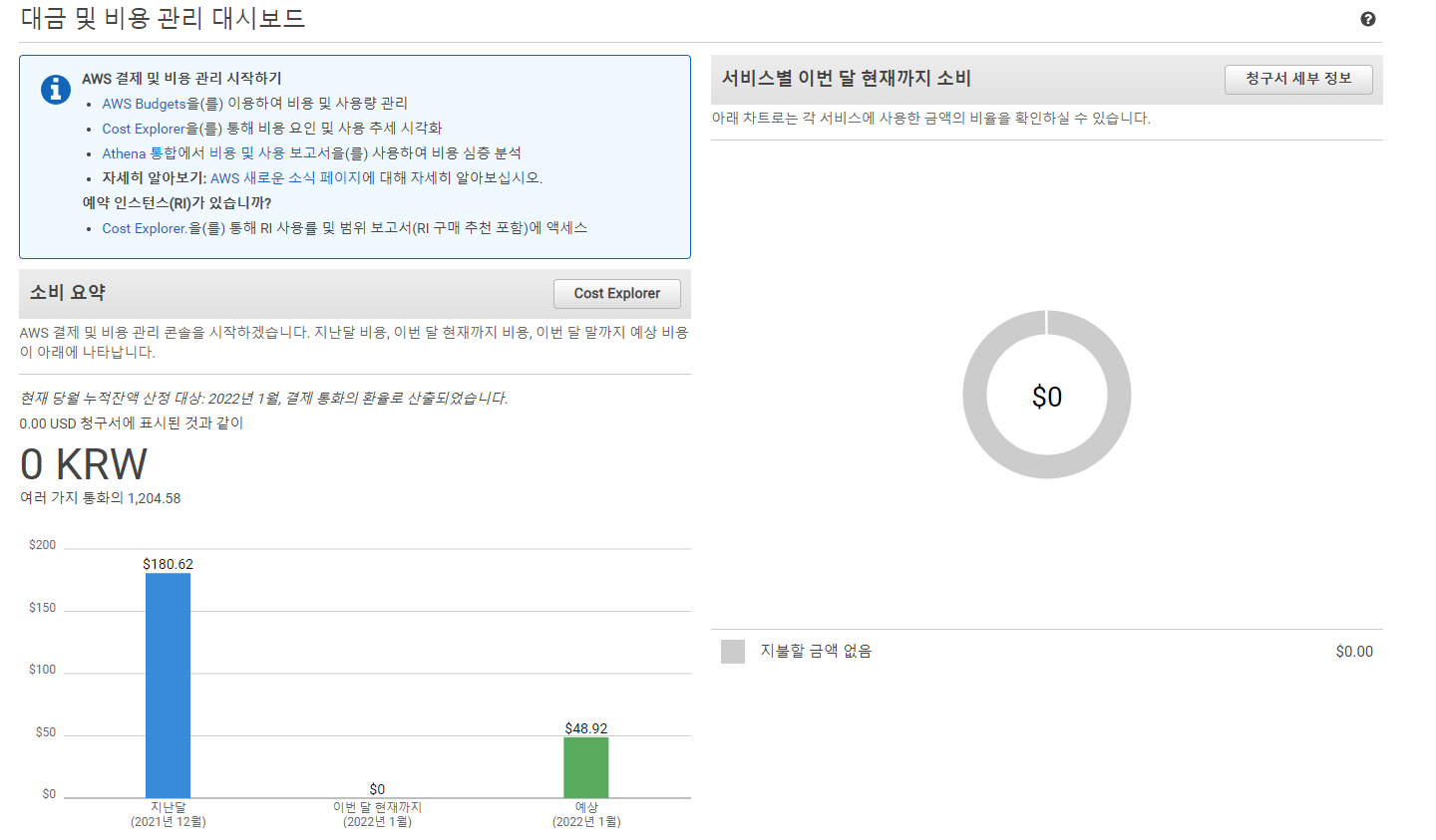 친절하게도 메일에서는 서비스하는 지역(서울) 외에 region을 허용하는 경우 메일을 보내준다. 당시 AWS 서비스에 대해 무지한 상태여서 자동으로 설정되는 것인 줄 알았다. 그리고 비밀번호 바꾸라는 메일이 추가로 오며 비밀번호를 바꾸고 틀린 그림찾기마냥 대시보드에 트래픽이나 실시간 청구금액 확인 시 이상이 없어보여 주말에 갈 여행을 준비하고 있었다.