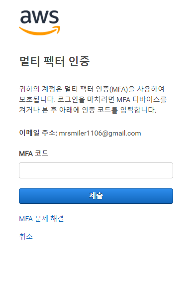MFA를 설정하면 아이디 비밀번호 로그인 외 MFA를 설정한 디바이스의 OTP번호까지 인증이되야 로그인이 가능하다.